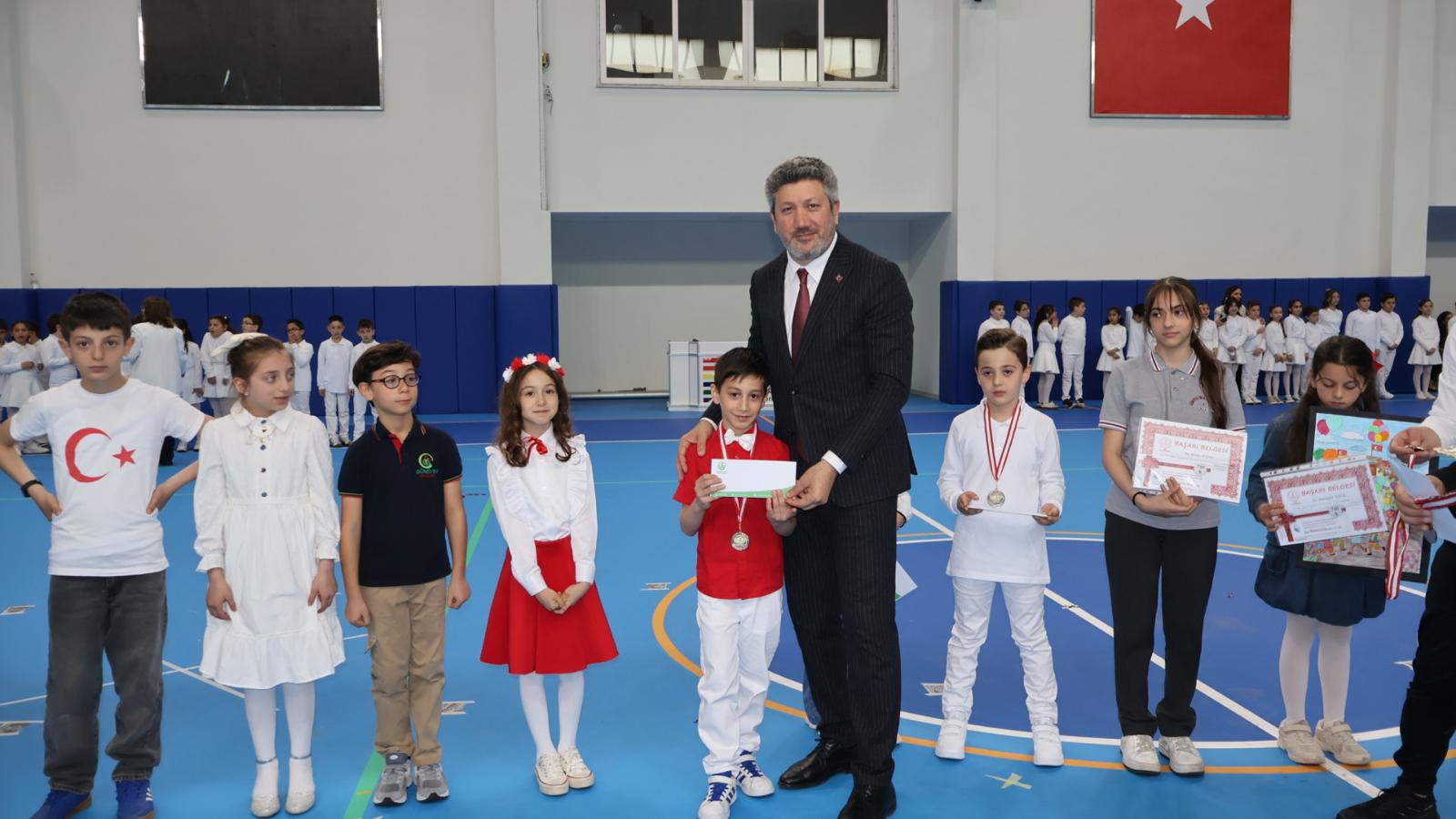 Vatandaşlarımızın yoğun ilgisiyle gerçekleşen törenin sonunda, okullarda düzenlenen yarışmalarda dereceye giren öğrencilere çeşitli ödüller takdim edildi.