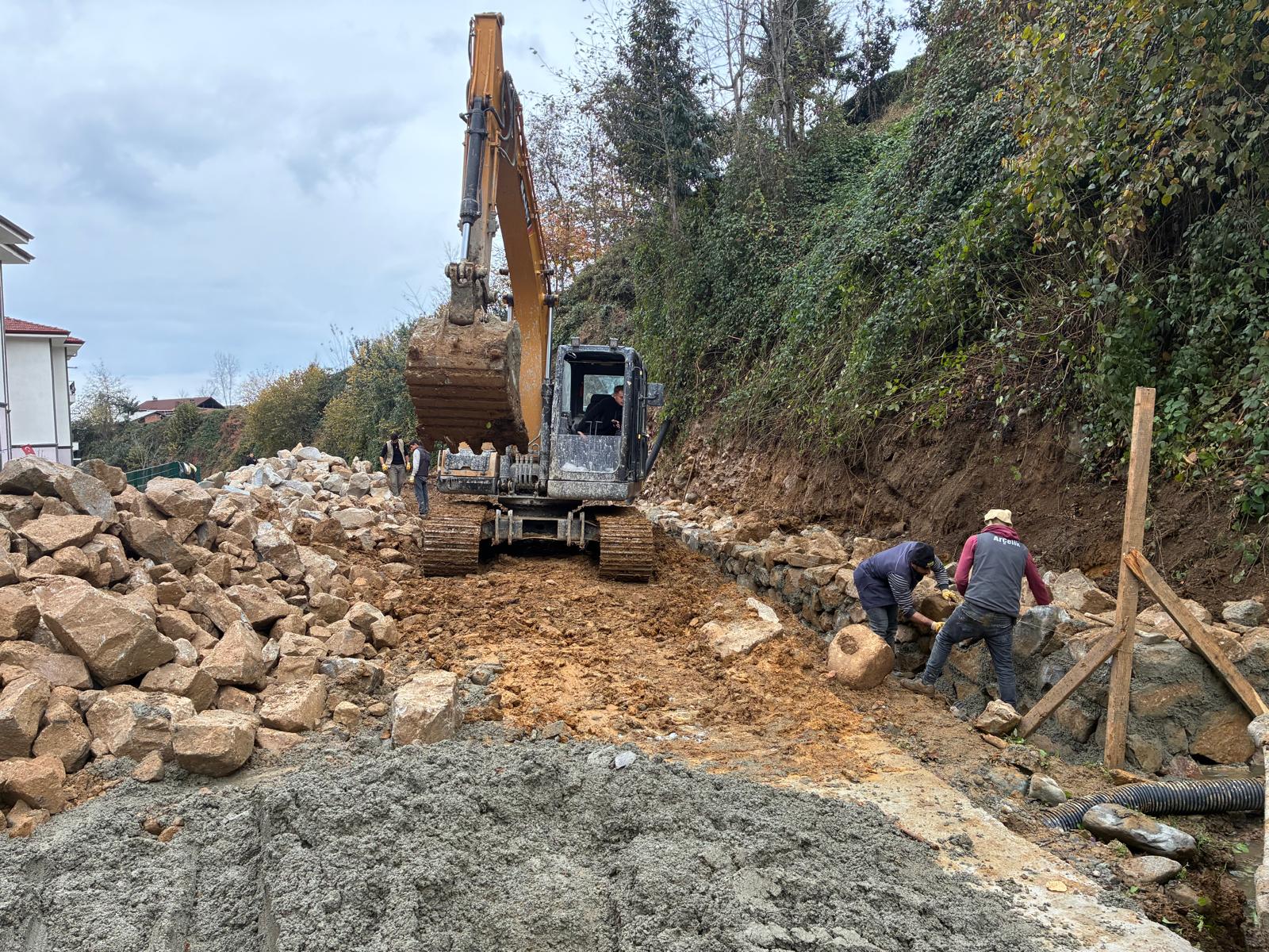 Küçükcami Mahallesi Halk Eğitim Merkezi arkası taş duvar çalışması.